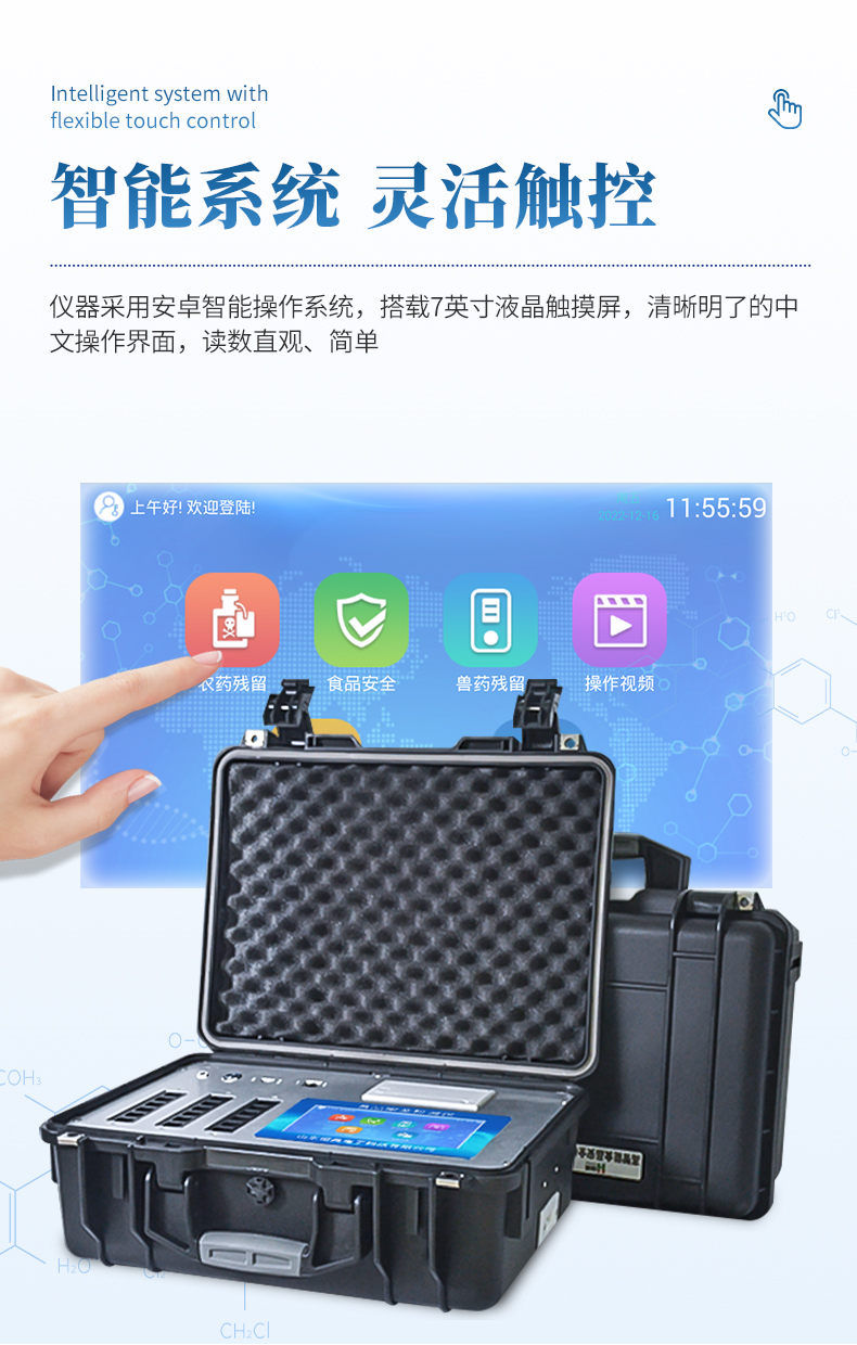 食品安全检测设备为集成化食品安全快速检测分析设备,市场监管局检测中心、院校及各单位食堂、检验检疫部门等单位使用。